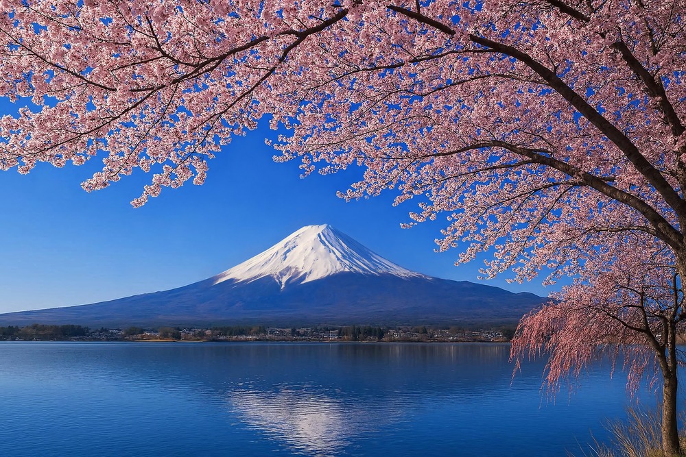 Title:AI-photo-Art 『春の朝、桜と富士山』