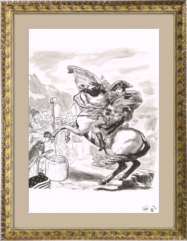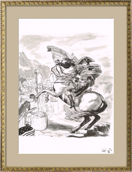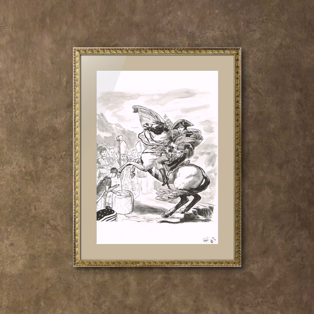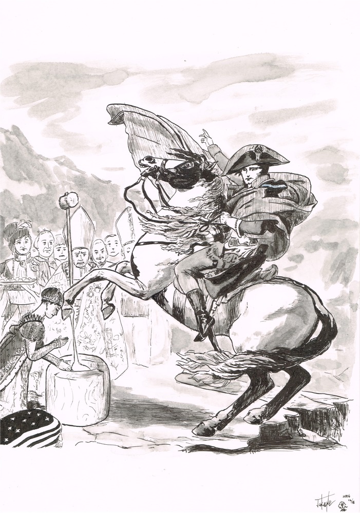 ベルナール峠を越える かっちょいーナポレオン! と思いきや、 司教達と一緒に「餅つき」!? 餅をこねるのは 妻ジョセフィーヌ. 「戴冠式かと思ったのに...」 「私がやってたのになぁ...」(by大司教)