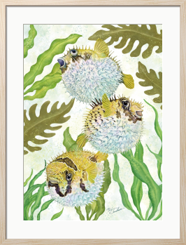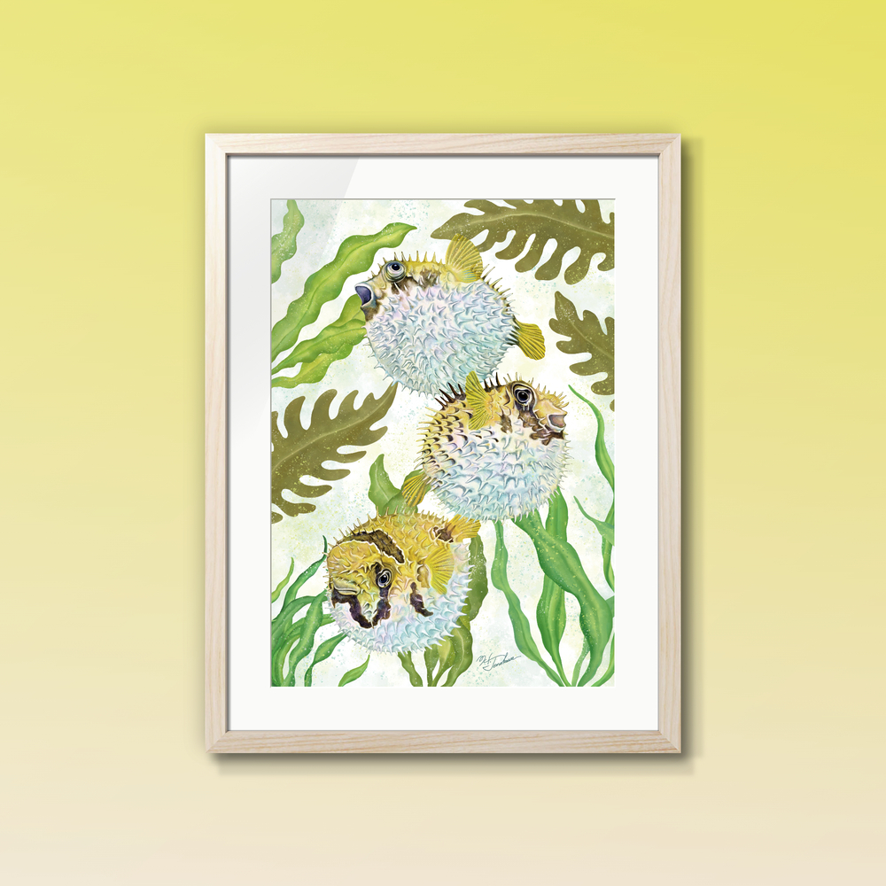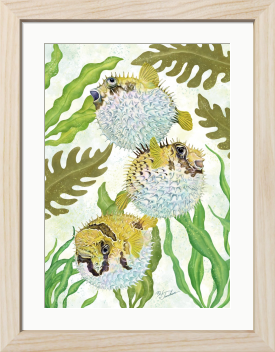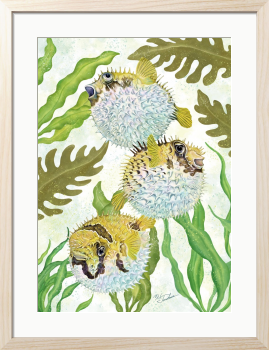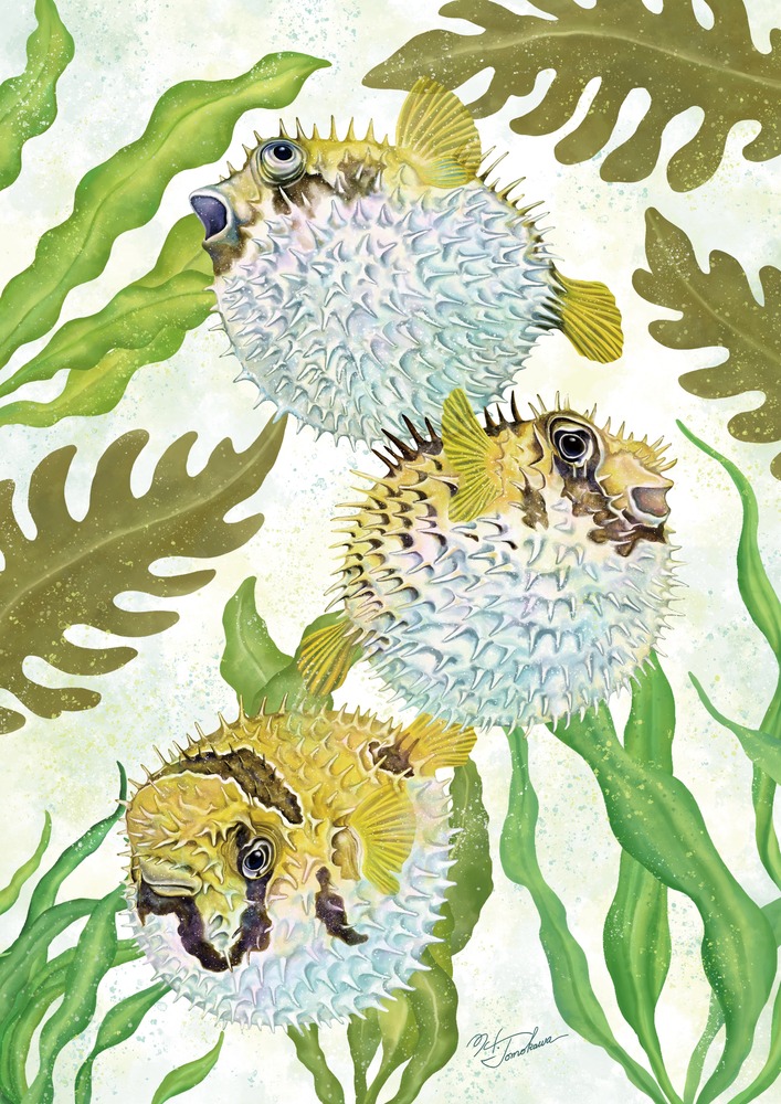 ご覧いただきありがとうございます。 ぷくぷくと海藻のあいだを泳ぐハリセンボン仲良し3匹組。
