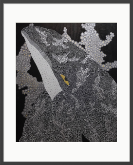 黒い背景の中に浮かび上がるのは、広大な海で生きる1頭の鯨。その大きな体と穏やかな様子から“包容”の象徴とされている。