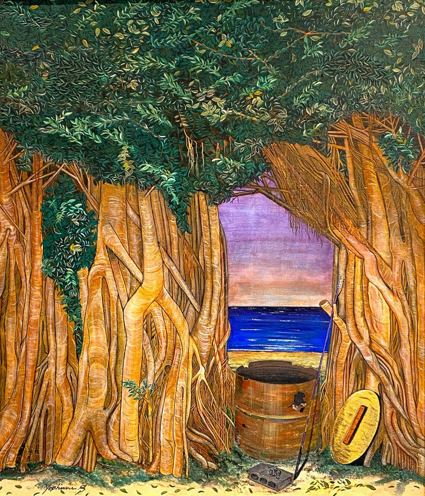 暴風の役目もあるガジュマルの大木。台風や潮風からやさしく家屋を守ってくれる。