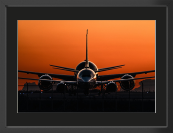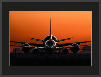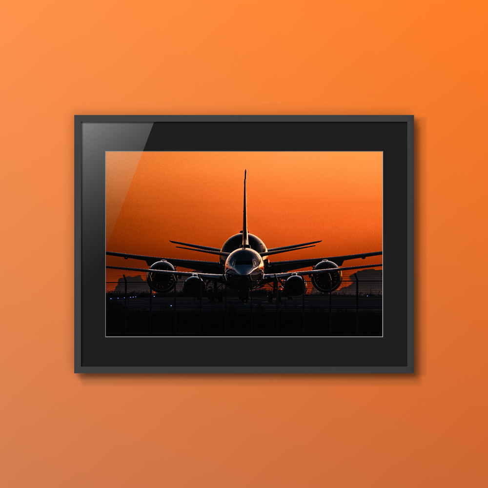 作家推奨の用紙: 琥珀色のグラデーションを最も美しく再現するため、コットン100%の最高級紙「ハーネミューレ フォトラグ」を推奨しています。マットでしっとりとした質感が、逆光に浮かぶ機体の重厚さを引き立て、まるで絵画のような深みをもたらします。