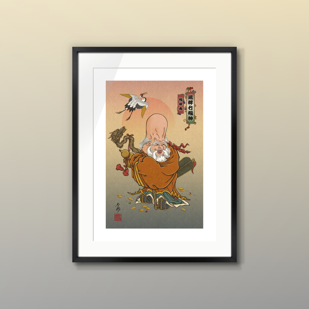 本作は、七福神信仰における福禄寿の意味を一図として表した作品です。住まいの空間に、健やかな日々と長く続く福を願う一枚となっています。