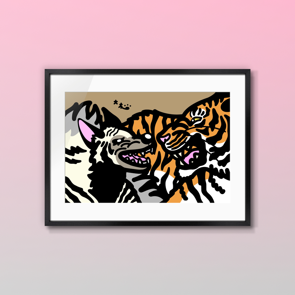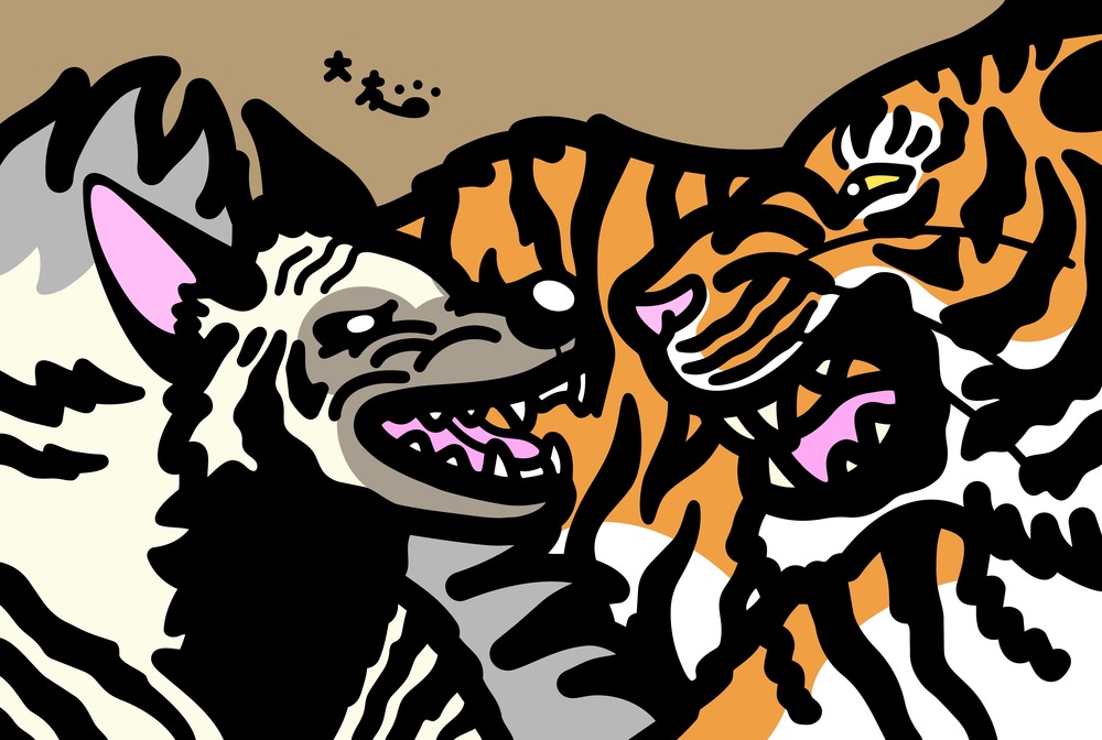 Title:シマハイエナ対ベンガルトラ