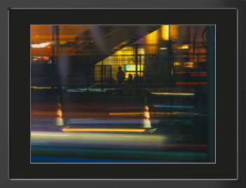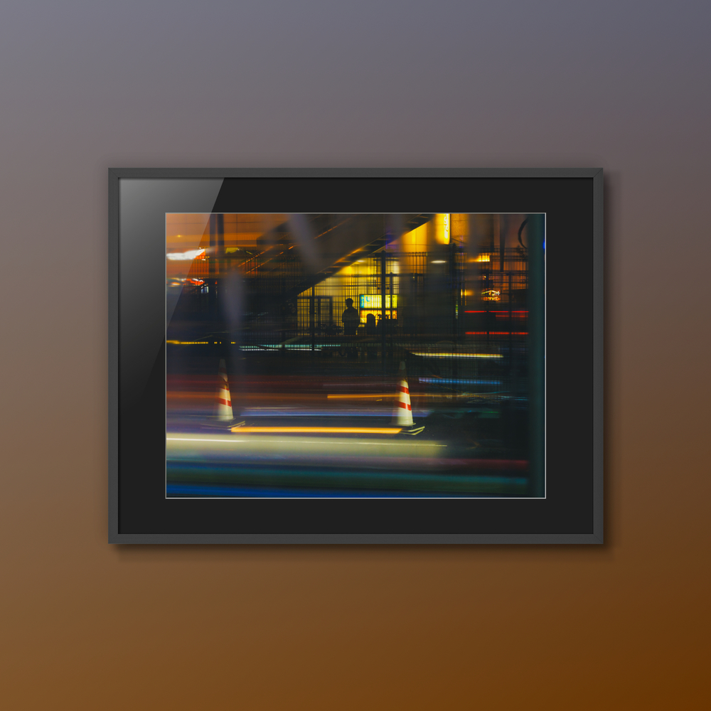 日常の中で常にとても美しい光景が生まれ消えていきます。都市の色彩と佇む人影と車の動きを光で捉えて色と静と動を1枚に納めました。