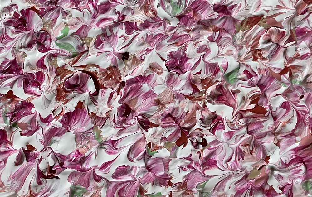 柔らかなモーヴのベールが広がる幻想的な作品です。華やかさと優雅さを兼ね備えた色合いが、心に深い感動をもたらしてくれます。少しずつ浸透してくる色が、心の奥深くに広がる波のように、静かに癒しの時間を演出します。まるで夢の中で過ごすような、心が澄みきった空間をお楽しみください。