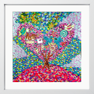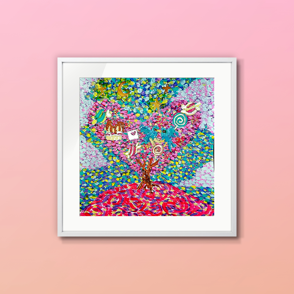 愛とかお菓子が生えている。 ピンク色の甘い木。