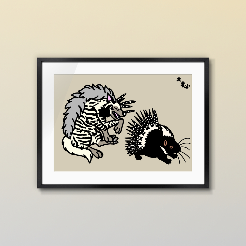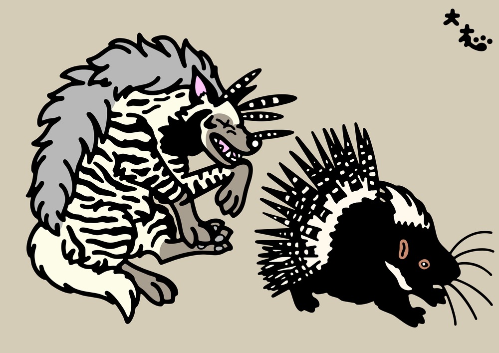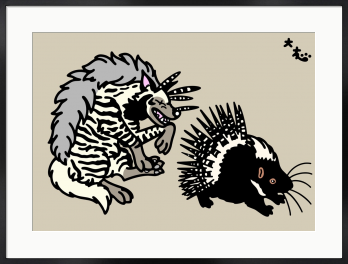 Title:シマハイエナ対アフリカタテガミヤマアラシ