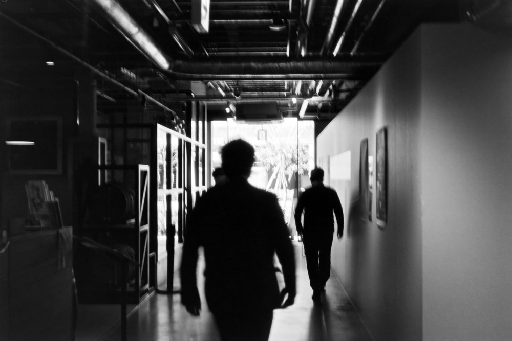 Businessmen striding out of office buildings, shoulders cutting through the wind as they head into the city. Don't their backs resemble those of battle-hardened warriors?
