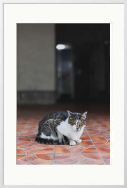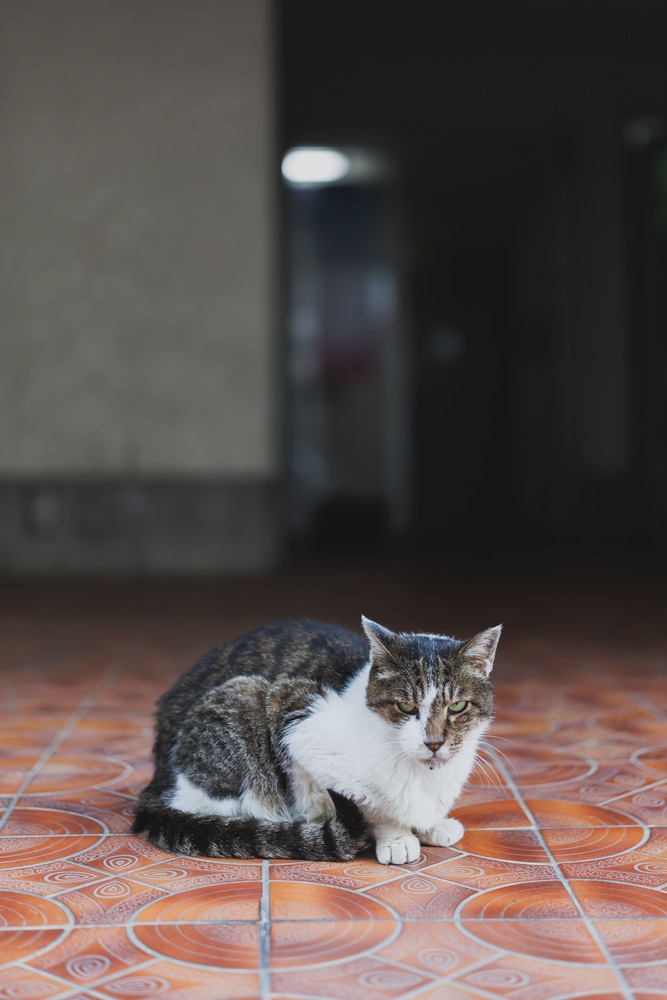 野良猫・地域猫はとても魅力的な被写体です。人間に慣れていながらも一線を隠す厳しい視線は野生の生き抜く力強さも共存しています。朝のいつもの散歩コースにいる猫さん。いつも厳しい視線です。