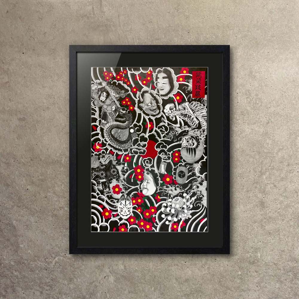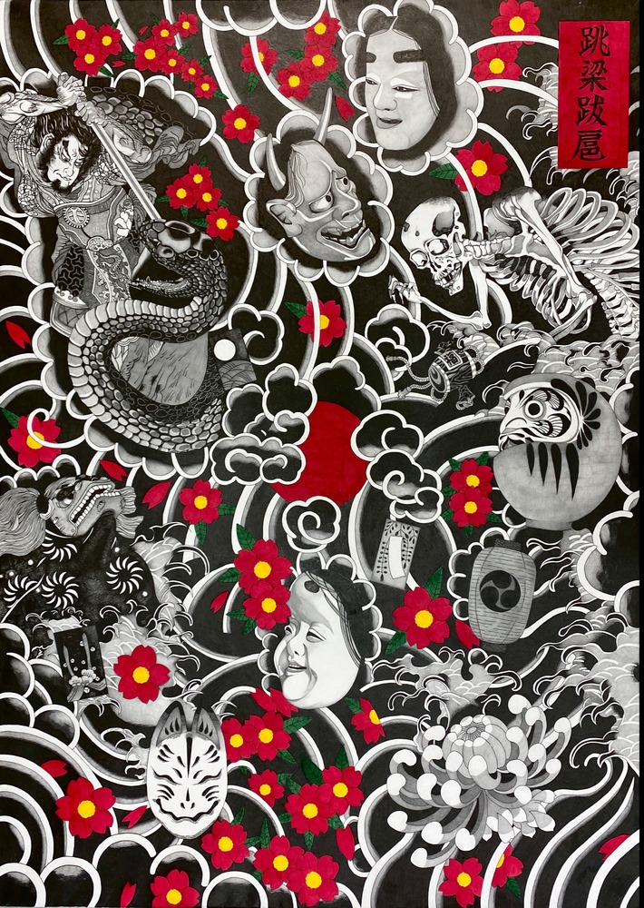 魑魅魍魎が、好き勝手にのさばり、振る舞う。 そんな「跳梁跋扈」の世界観を、鉛筆とボールペンのみで緻密に描きました。