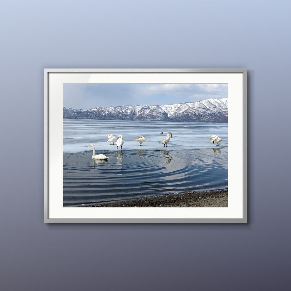 屈斜路湖に春の訪れが近づくころ、ハクチョウたちが戻ってきます。砂湯は地底から熱水が湧き出るので氷がいち早く融けるのです。