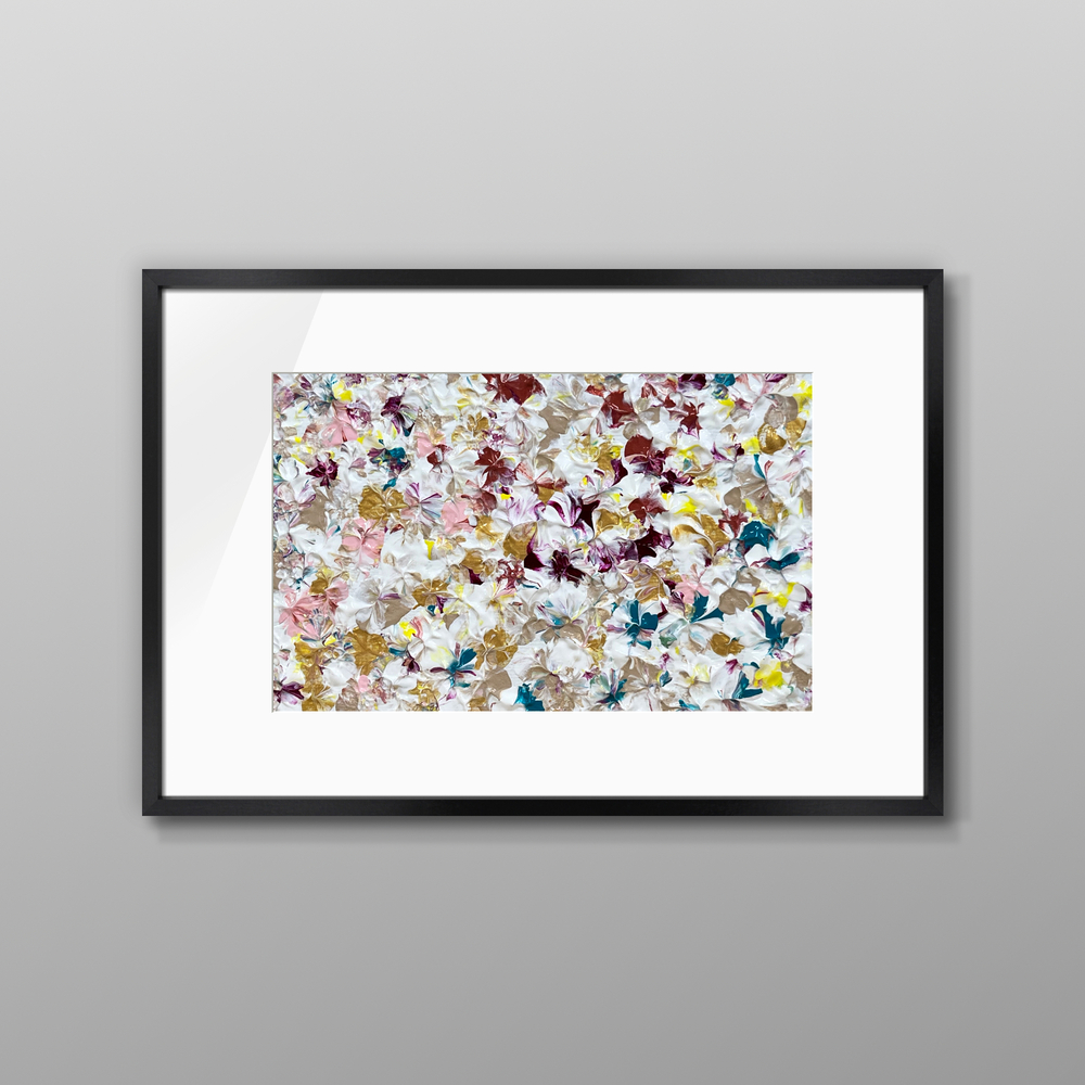 彩り豊かな花々が織りなす美しい風景が、心に華やかな感動をもたらす作品です。穏やかな色合いと繊細なデザインが融合し、まるで繁栄の中で新たな美が生まれる瞬間を映し出します。この作品は、心の深い部分に優雅な安らぎを与えつつ、内なる美しさを引き出す手助けをしてくれます。