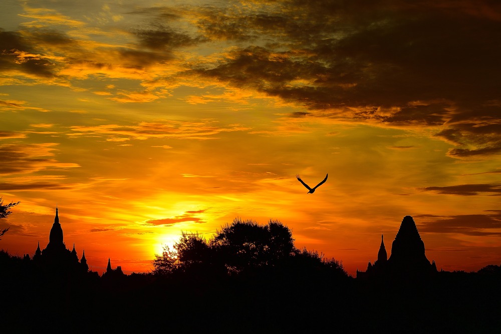 ミャンマーのオールドバガン。 古からの寺院が立ち並ぶ静かな町の夜明けです。