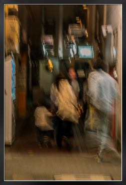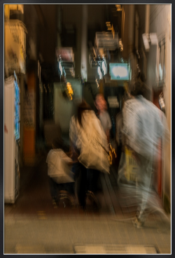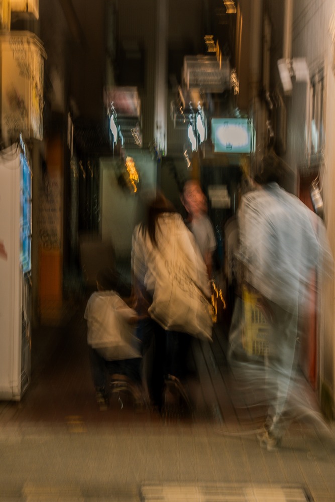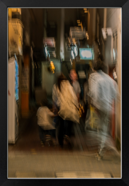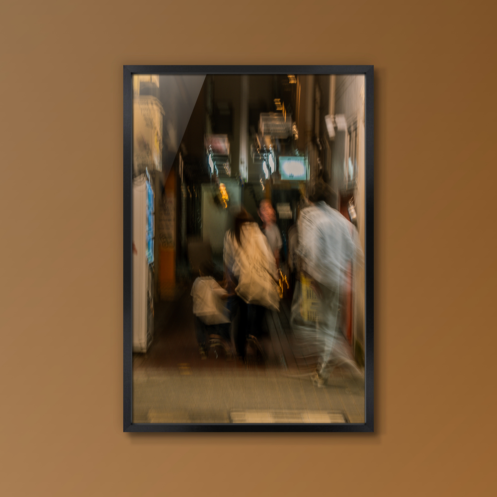 街の片隅、無数の人生が交差する瞬間。 誰かにとっての日常は、別の誰かにとっての未知なる風景。 スローシャッターで捉えた人々の残像は、輪郭を失い、ただ「流れる時間」そのものとしてそこに存在しています。 忙しなく過ぎ去る日々の中で、ふと立ち止まって眺めたくなる、都会の詩的な一幕です。
