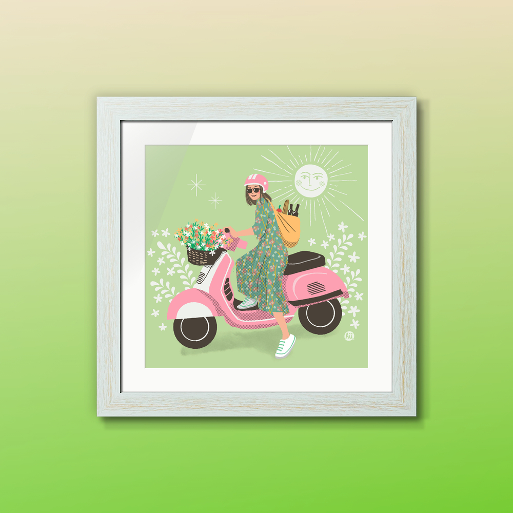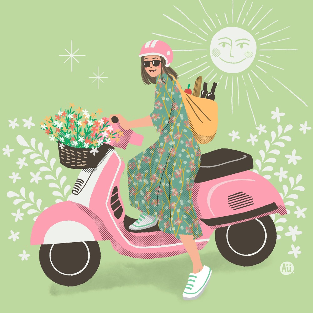 花いっぱいのかごをのせたレトロバイクでピクニックに行きませんか?