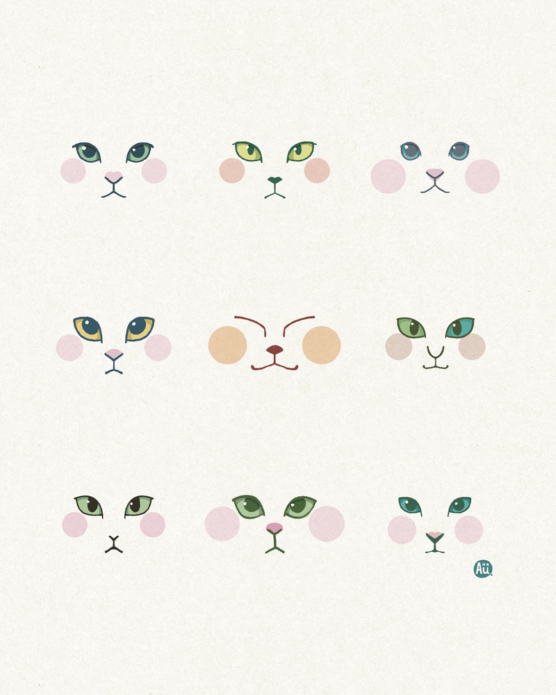 猫たちの顔を集めたコレクション。あなたはどの猫がお好みですか?