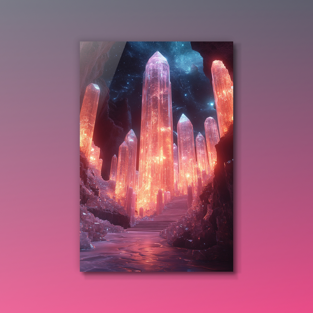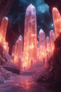 深紅に燃える結晶群。 それは破壊ではなく、再生の炎。 洞窟の奥に現れる光柱は、 魂の情熱が形になった姿。 この神殿は「意志」の象徴。 迷いを焼き払い、 本来の力を思い出させる。 静かに燃える光は、 覚悟を持つ者だけを導く。