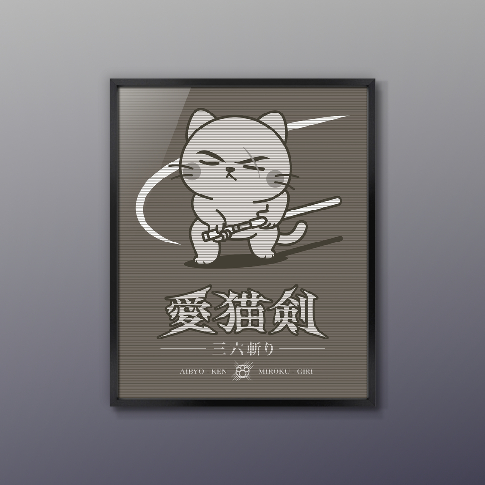 盲目の剣士、愛屋 猫次郎またの名を血桜猫次郎。 神速の居合術、愛猫剣 弥勒斬りで神仏に代わり悪を冥土に葬(おく)る。 【作家コメント】 架空のモノクロ時代劇映画のポスターをイメージした作品です