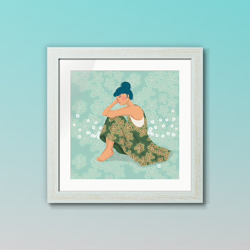 瑪瑙石の模様をテーマに、お昼のゆったりした時間を描きました。