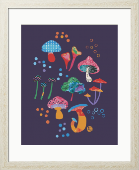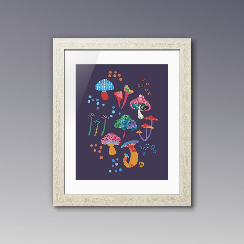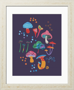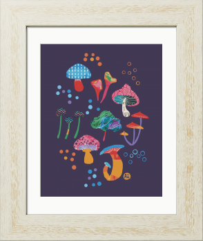 コラージュで作った、キャンディーカラーの楽しいキノコたちです。