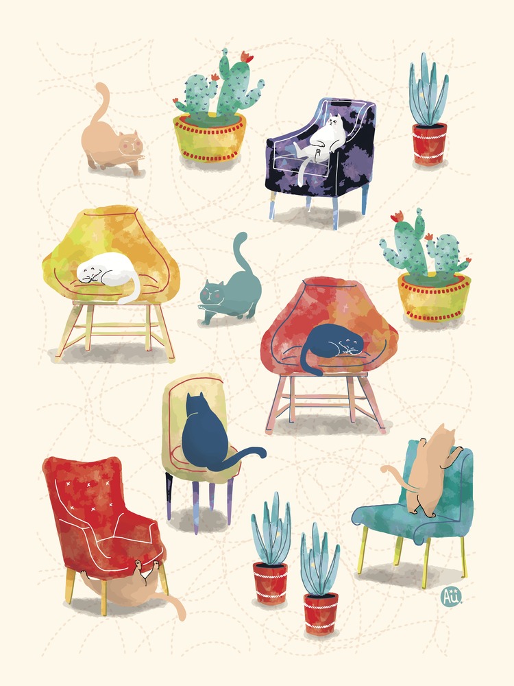 猫は自分の居心地のいい場所をよく知っています。 それぞれの椅子で、それぞれの座り方。