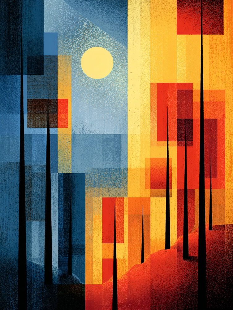 月明かりが彩るモダンな森。静かな夜の空気感をお部屋に飾って、癒やしの時間を過ごしませんか。