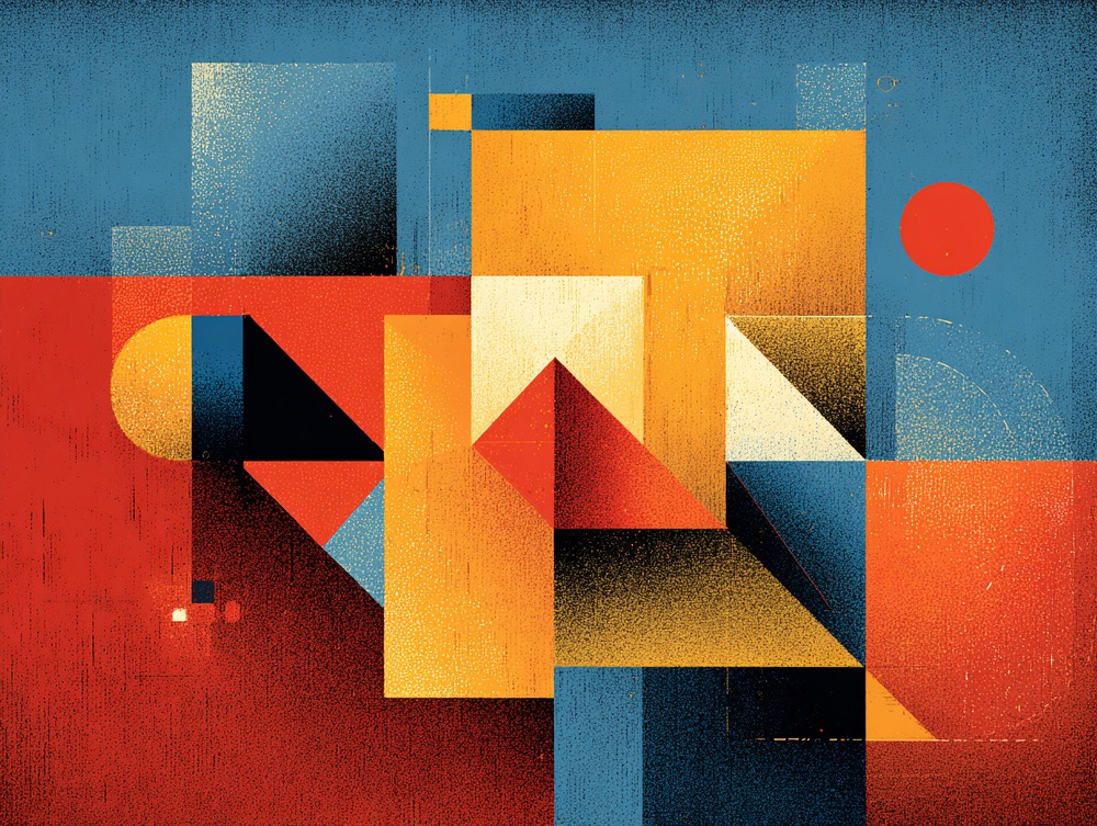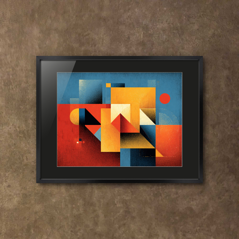 重なる三角形は心の躍動です。日常にポジティブな刺激をくれるこの絵を、あなたのお気に入りの場所に。