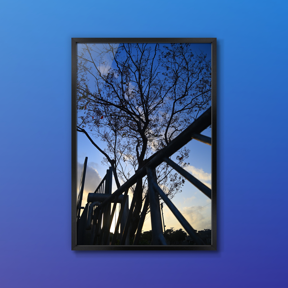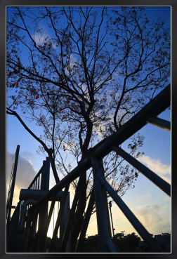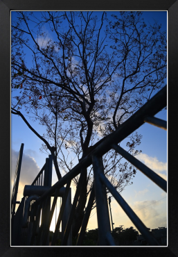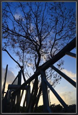 Title:柵越しの夕暮のシルエット