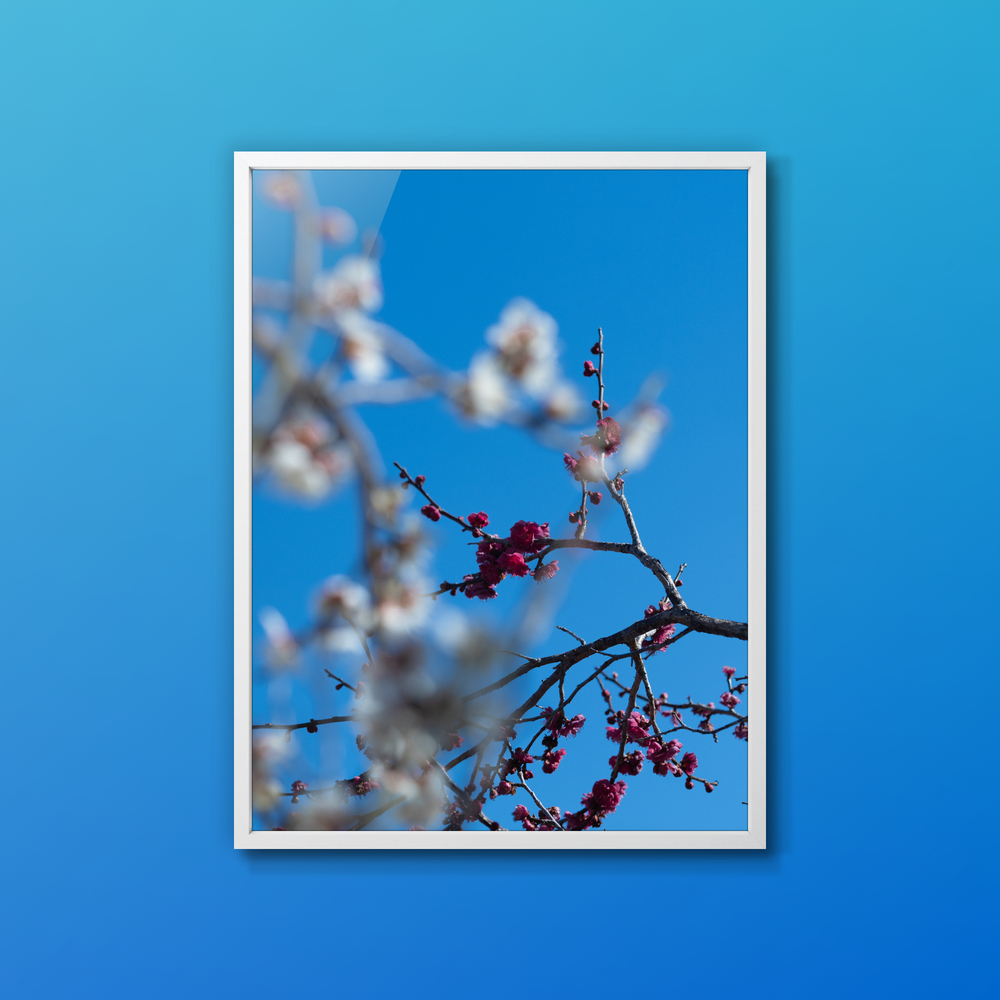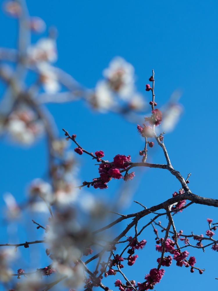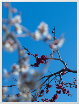 Title:紅梅、白梅の隙間から