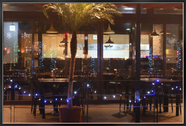 Title:クリスマスイルミネーションが映るレストランのガラス