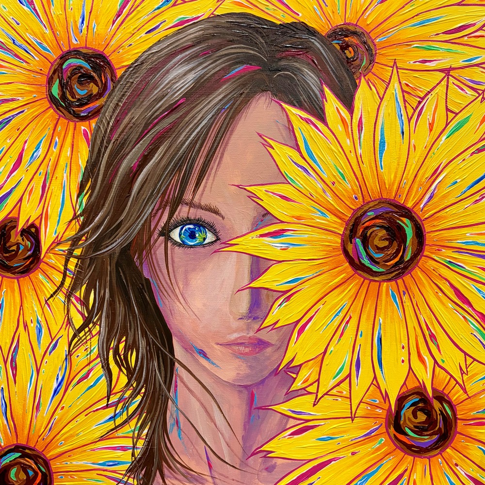 果てしなく咲き続ける希望の花々を描いた一枚です。