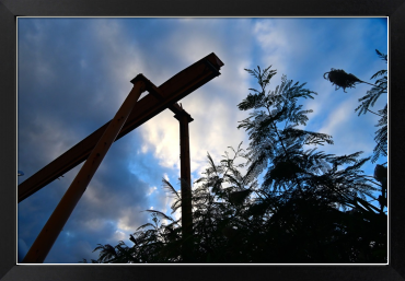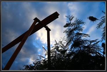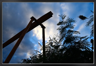 冬のスナップより、見上げるとクレーンが冬の黄昏にありました