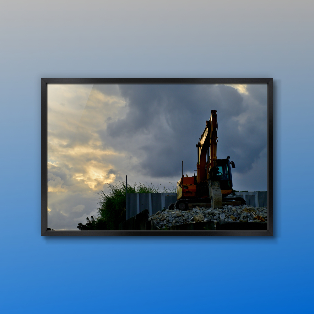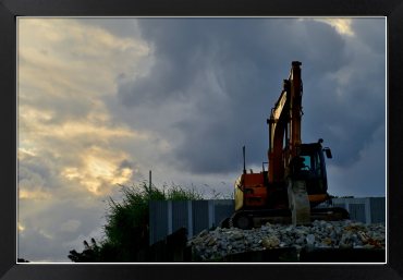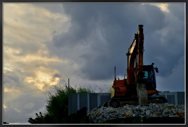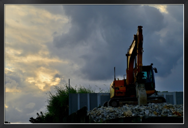 冬の黄昏のスナップ、重機と草むら