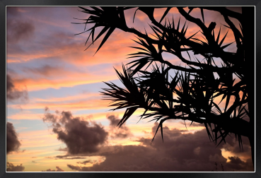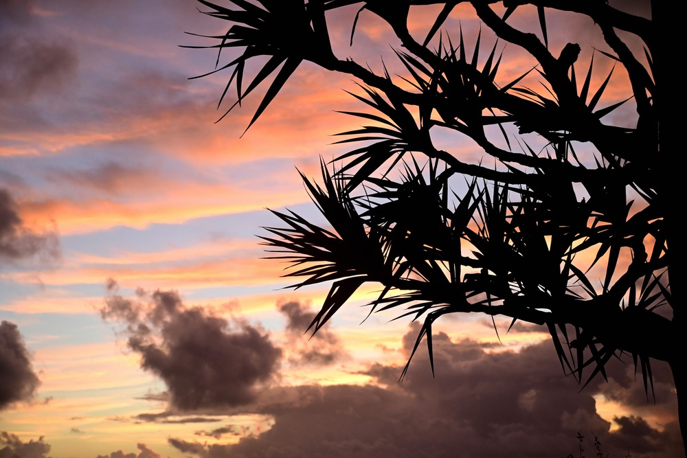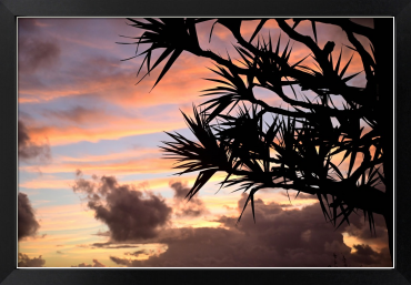Title:朝焼け雲とタコノキ(泡瀬ベイストリートにて)