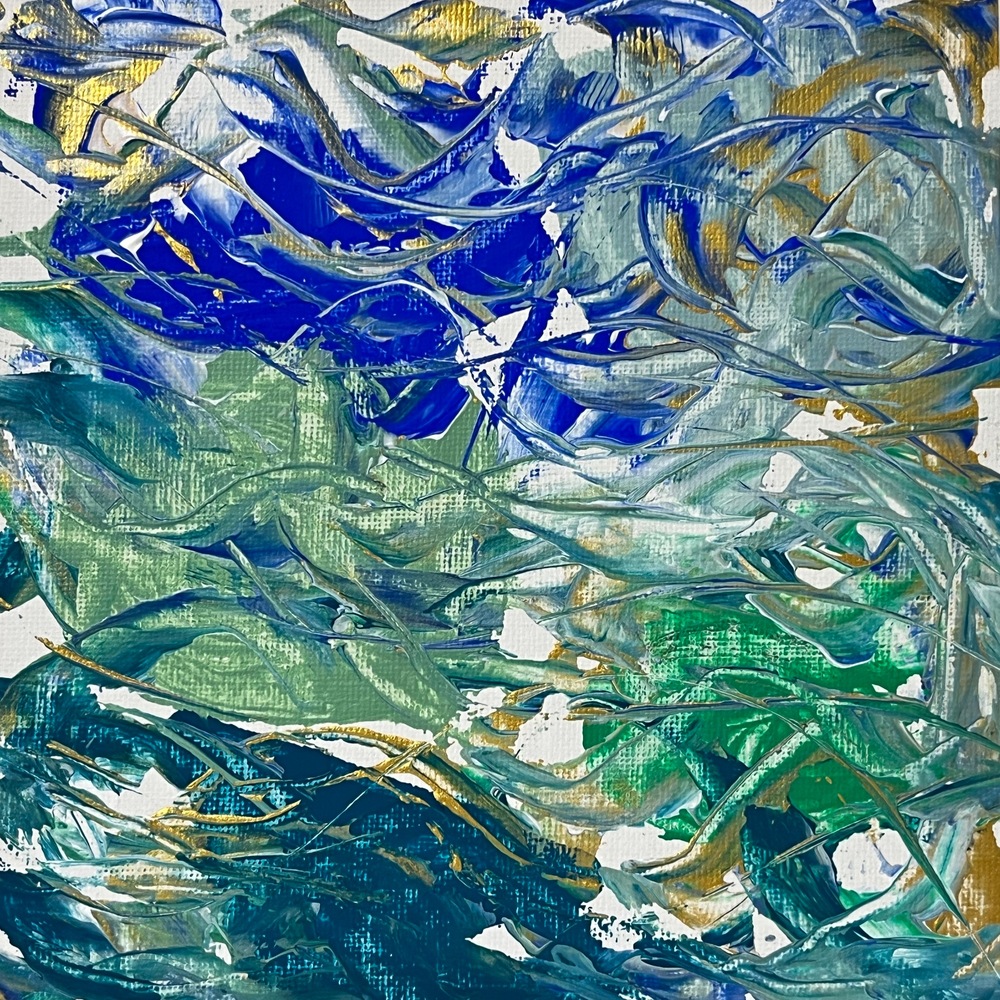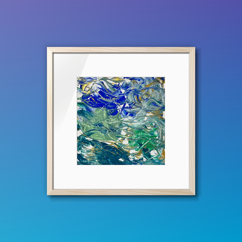 心の奥底から届けられる、静かな青のメッセージがここにあります。深い藍の波間から金色の光が差し込み、知性の輝きと穏やかなインスピレーションを提供します。この作品は、静寂のなかに無限の可能性を秘め、見るたびに新たな感動を呼び起こします。あなたの空間に、深い安らぎをもたらす贅沢なひとときをお届けします。