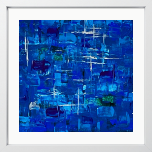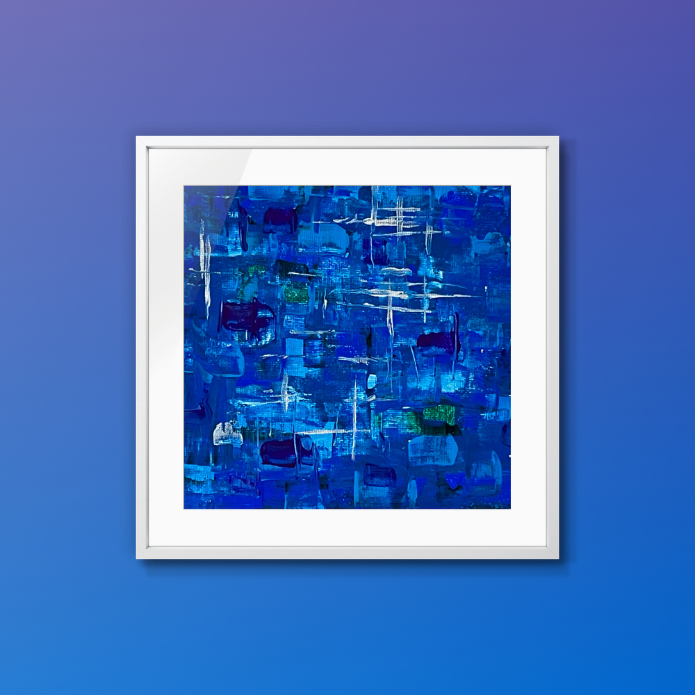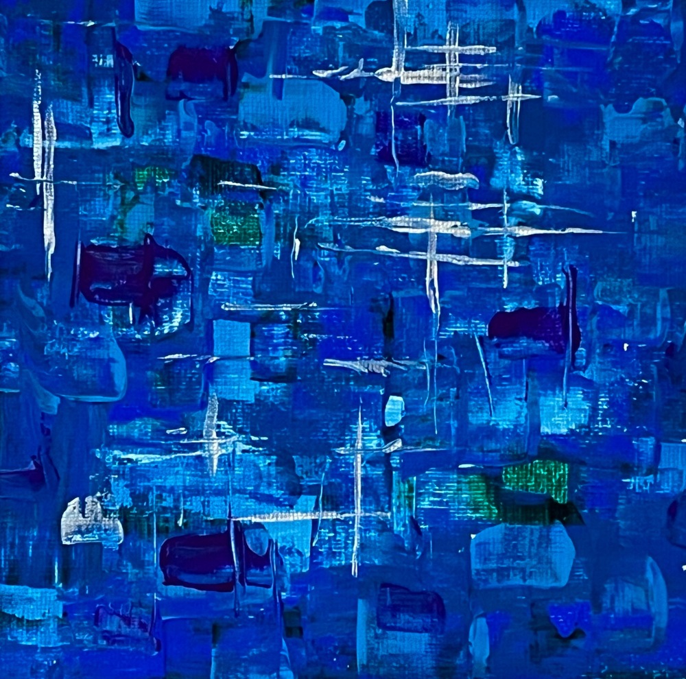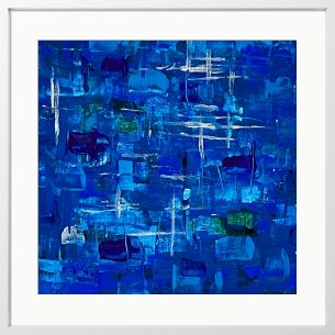 目の覚めるような鮮やかなサファイア・ブルーが、静かに流れる美しさを感じさせ、心を優しく包み込みます。色彩の重なりが、まるで夜空に浮かぶ星々のように、観る人の心に深い静けさと平穏をもたらします。この作品は、優雅なグラデーションが空間に独自のリズムを与え、心を和ませる魅力を持っています。この作品に特有の色合いは、リラックスした雰囲気を生み出し、日常の喧騒から離れた安らぎのひとときを提供してくれることでしょう。