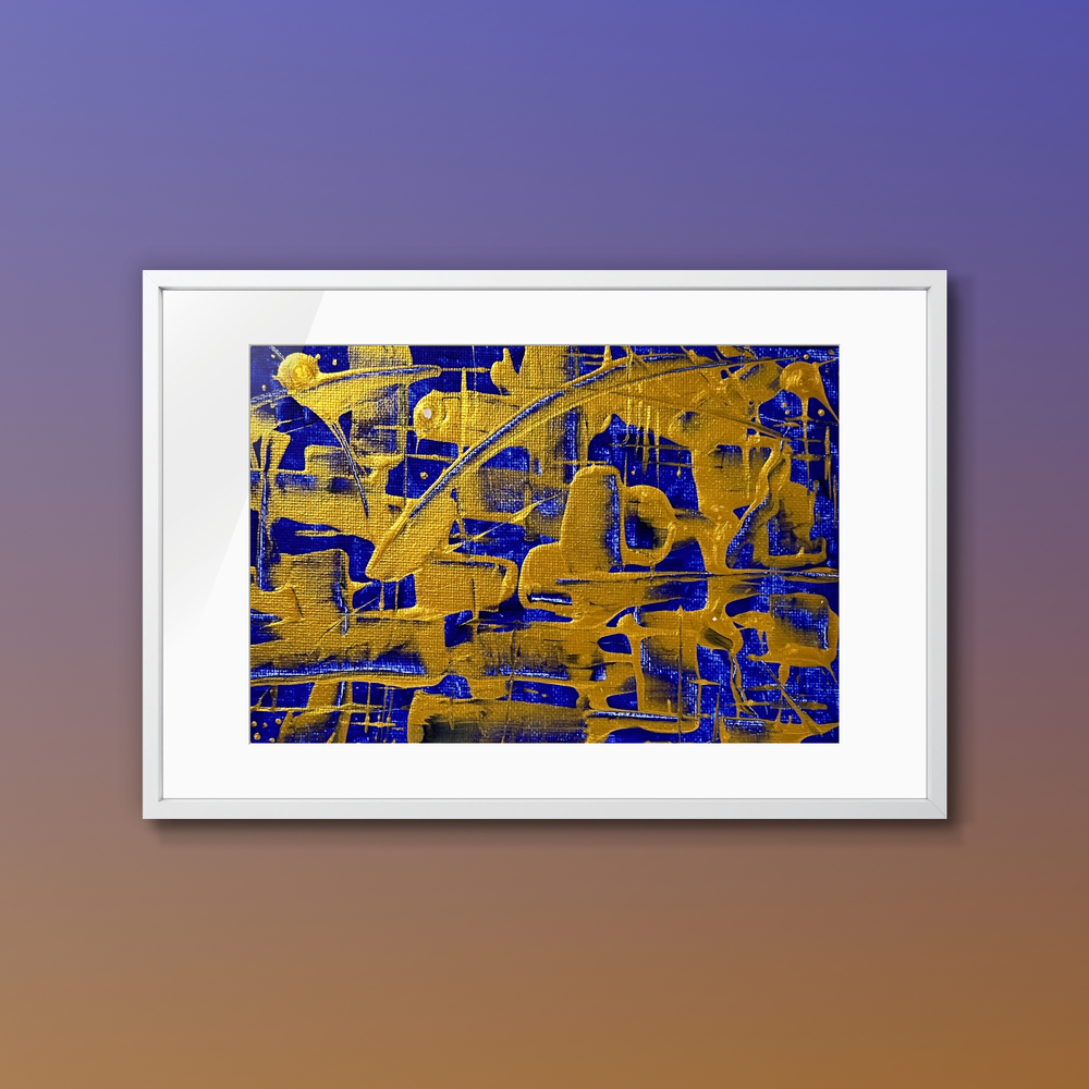 深いウルトラマリンの色合いが、あなたの空間に特別な奥行きを与えます。このアクリル抽象画は、複雑に絡み合うラティス模様が特徴で、まるで思考の迷路に誘われるかのような魅力を持っています。鮮やかな青に息づく重なり合う色彩は、観る人を新たな発見へと旅立たせ、心にインスピレーションを与えます。静かに広がる美しさは、洗練された空間をあらゆる角度から引き立て、心を解放してくれること間違いありません。