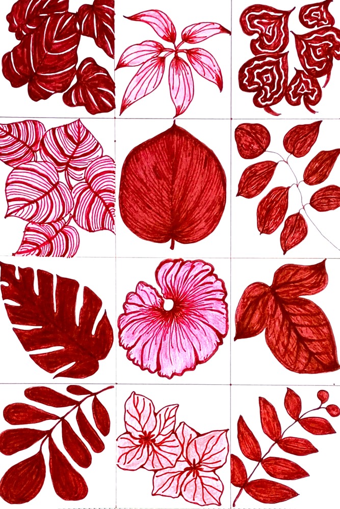 さまざまな赤の線の重なりで表現しました。