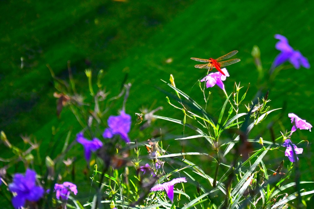 ルエリアの咲く都市の水路にタイリクショウジョウトンボがいました