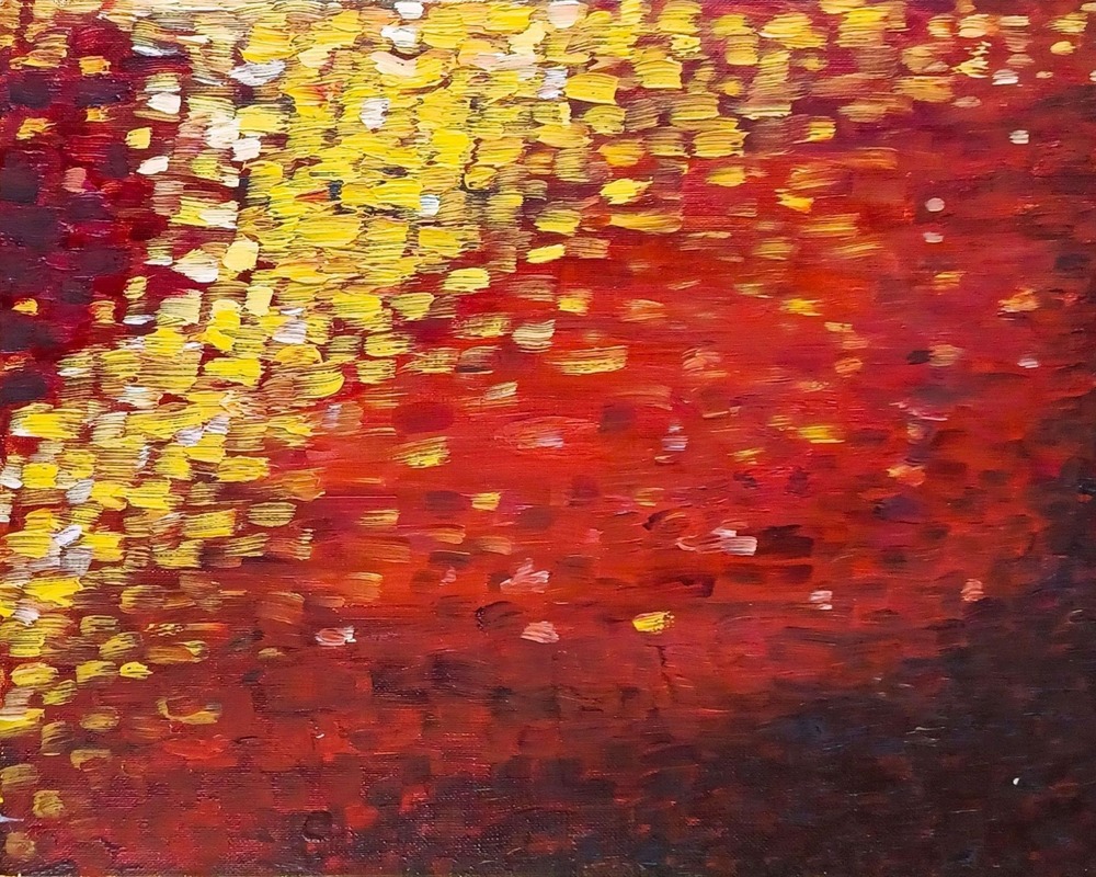 油絵の赤の「厚み」と「重なり」、