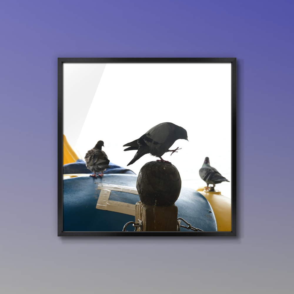 休園日のボート乗り場ではエサ待ちのハト達が待ちぼうけ