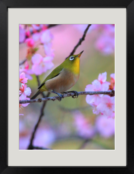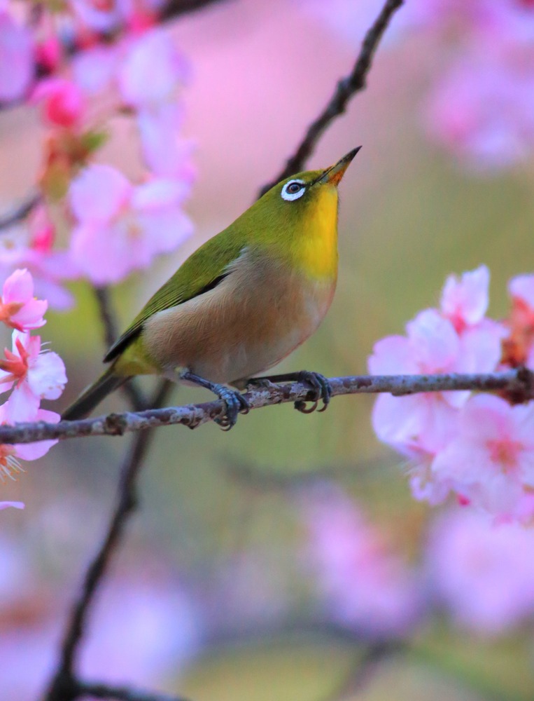 Title:河津桜とメジロ