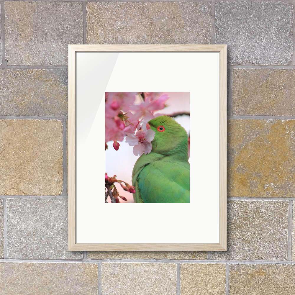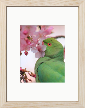 Title:河津桜と緑のインコ