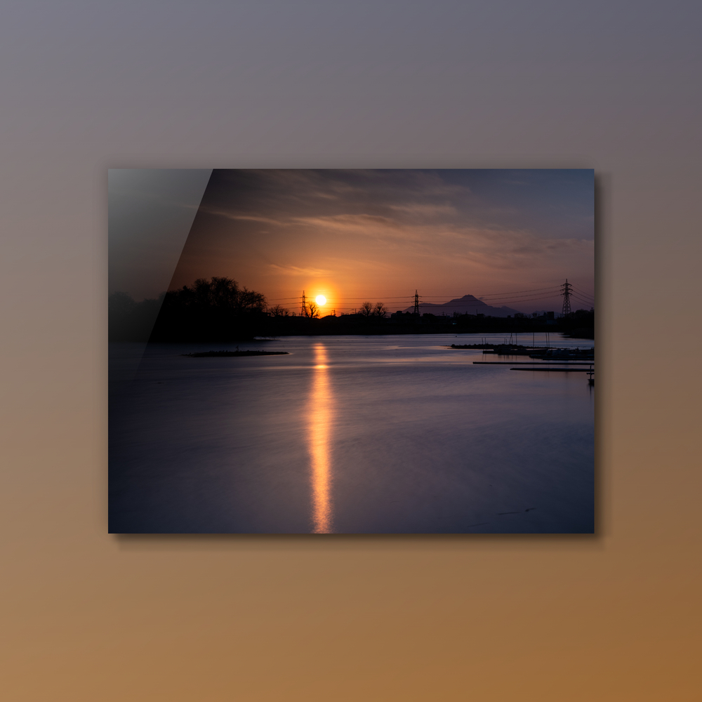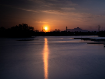 Title:湖面に伸びる夕陽