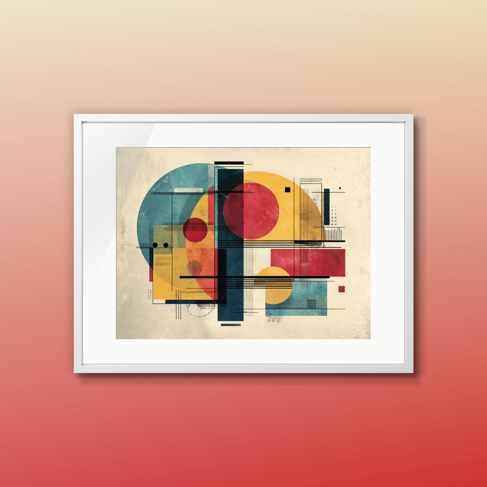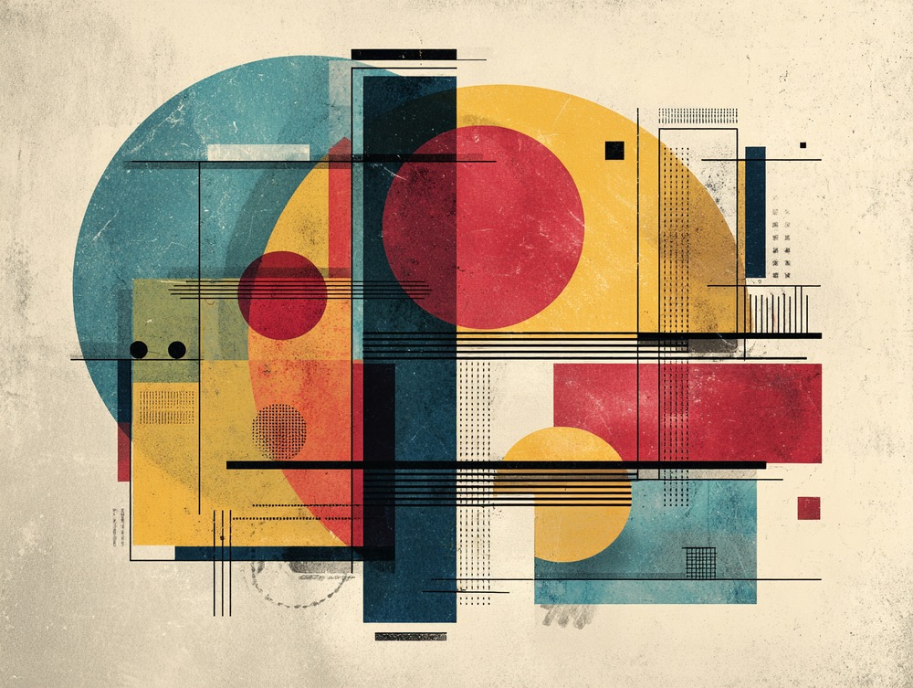 重なり合う形と、静かに深まる色彩。頭の中で組み上がるアイデアの断片を、緻密な構成で描き出しました。