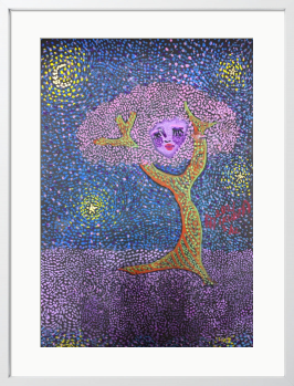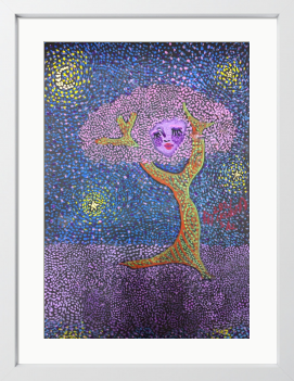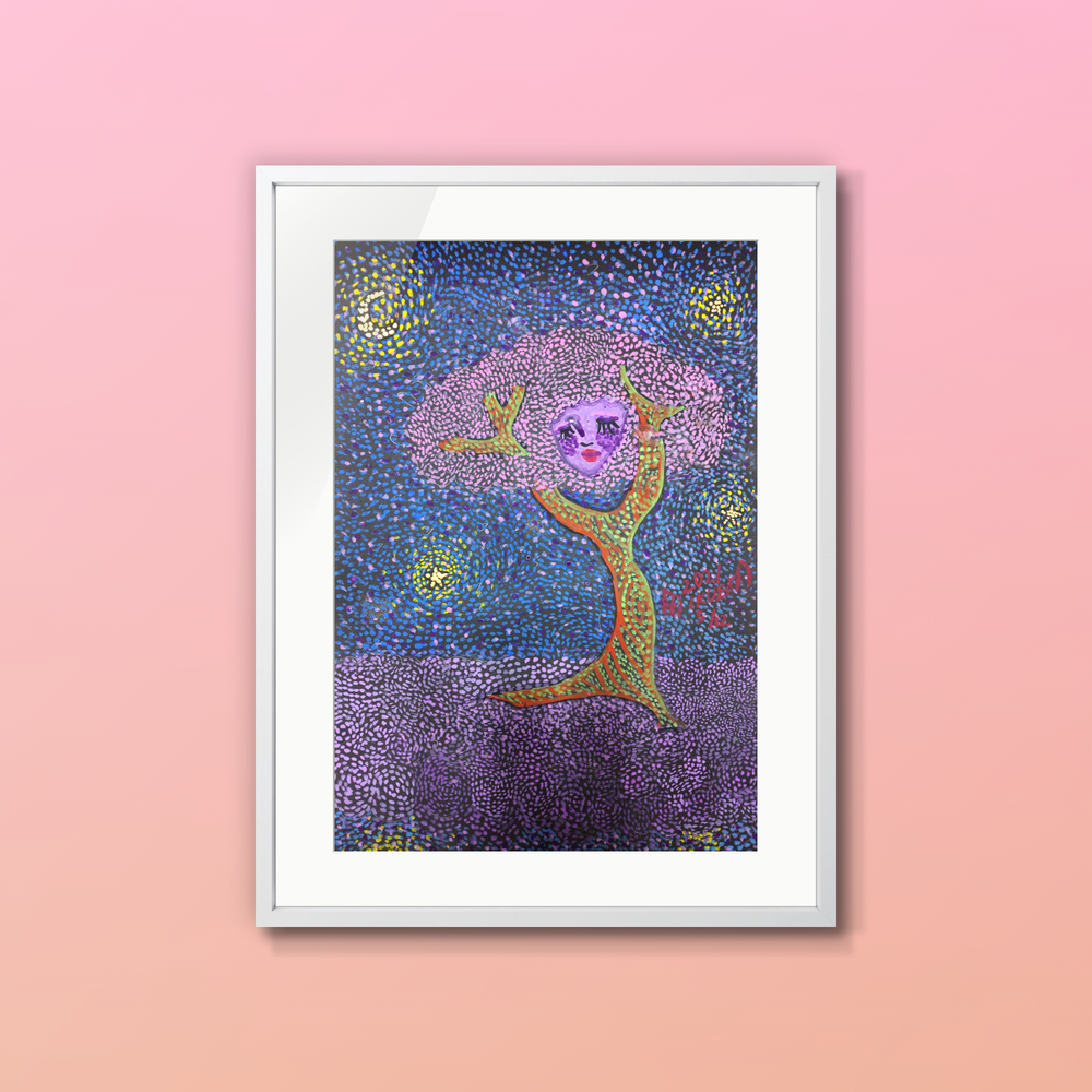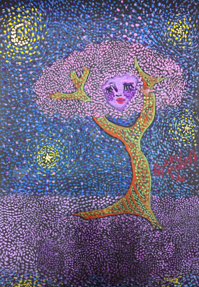 画材 アクリル絵の具 技法 点描画 命を宿した母性の木
