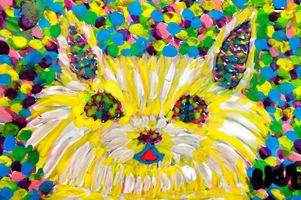 画材 アクリル絵の具 技法 点描画 甘い砂糖菓子の様な美しい猫
