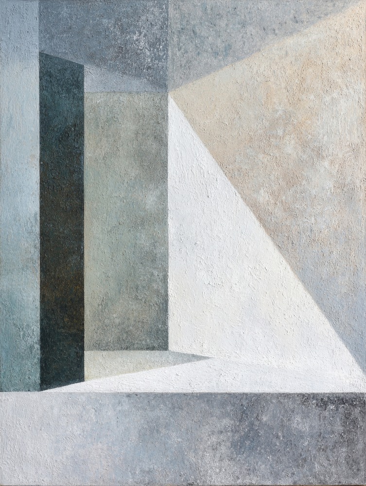 都会を切り裂く、鋭い光。コンクリートの静寂に差す一筋の輝きを、重厚な質感と共に描き出しました。
