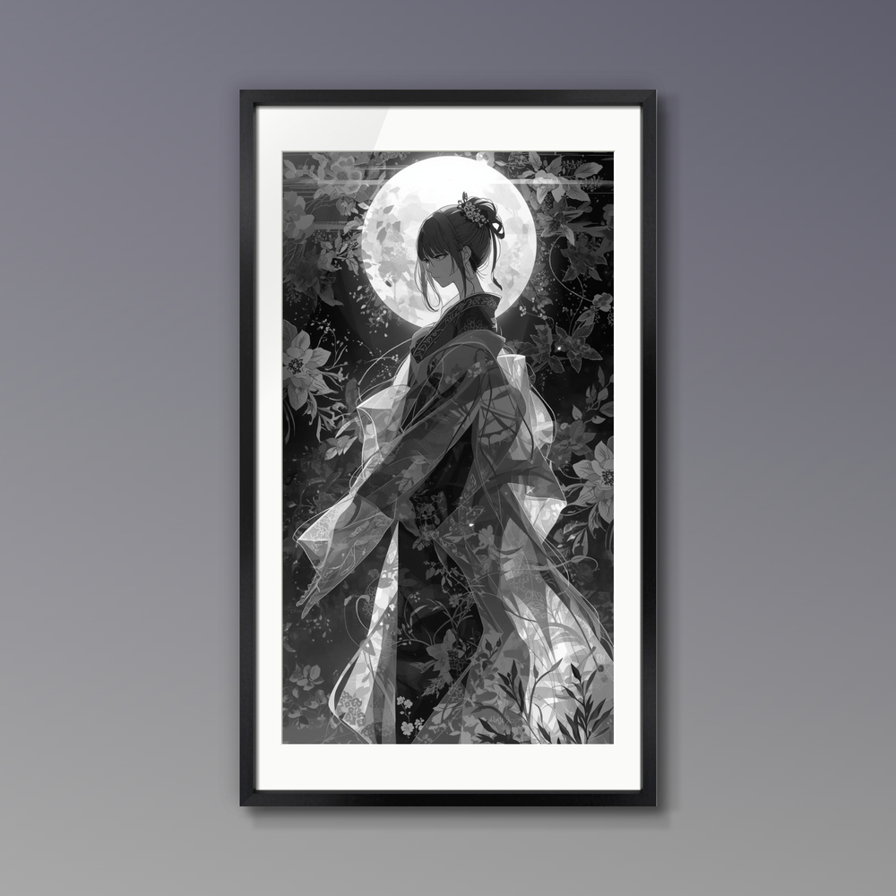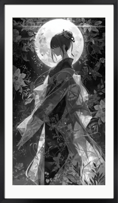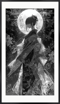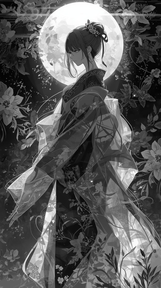 優雅な着物を纏った女性の淡い姿を描きました 神秘的な雰囲気と日本の美を表現しました